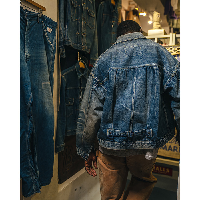 約3年の歳月を経て完成した’50年代の霜降りグレーを踏襲したTシャツと、BerBerJinディレクター藤原裕氏がこれまで見てきたデニムジャケットの中でもトップクラスの色落ちを誇るモデルをサンプリングし、オールハンドによる加工が施されたデニムジャケットが登場。