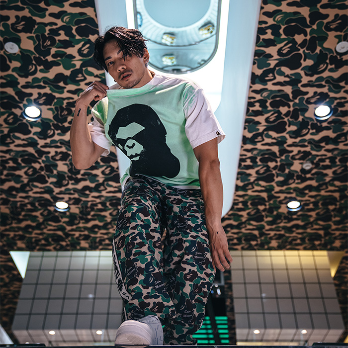 代表的な“APE HEAD”ロゴやBAPE® CAMO柄、シャークパーカーなど、インパクトのあるデザインでストリートを席巻。