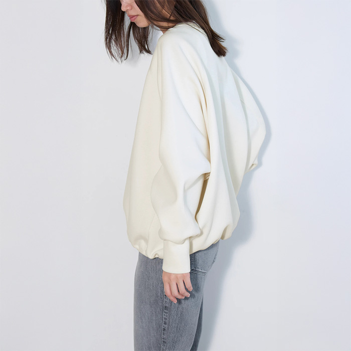 アームホールと身巾をゆったりとり、着丈も長めのオーバーサイズプルオーバー。ソフトな風合いを表現する為、特殊な柔軟加工を施したダンボール素材を採用しており、シルエットがきれいです。