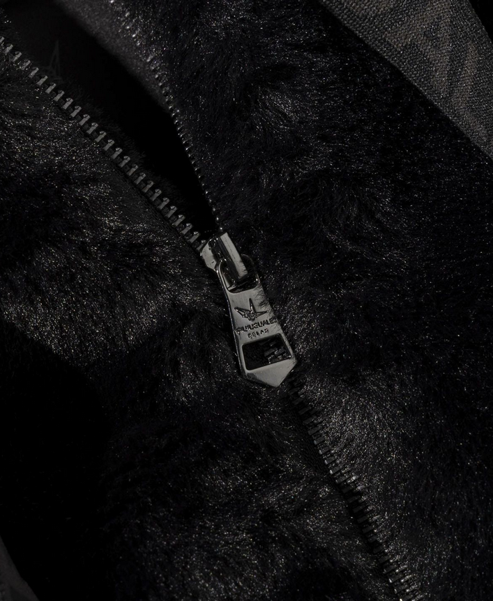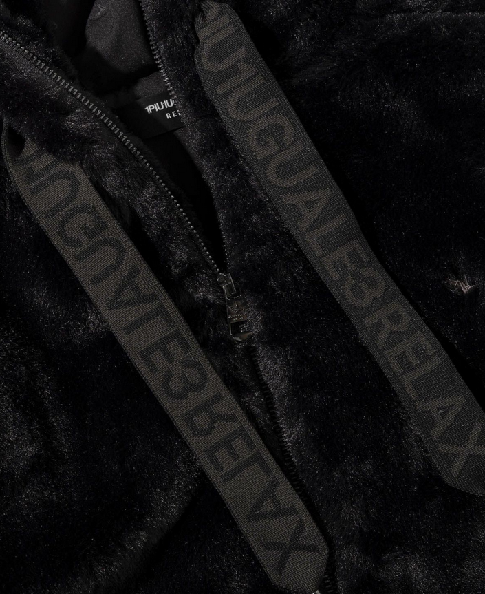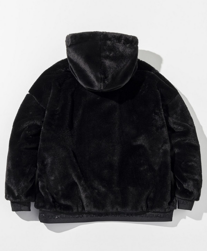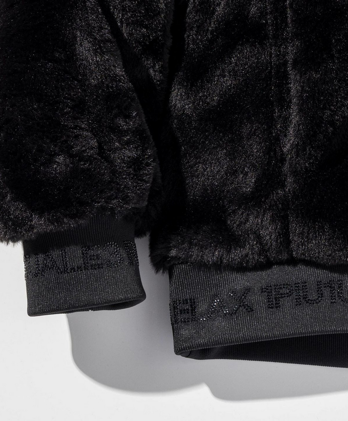 - 1PIU1UGUALE3 RELAX(ウノピゥウノウグァーレトレ リラックス) ラインストーンロゴファーブルゾン USO-25160 ブラック