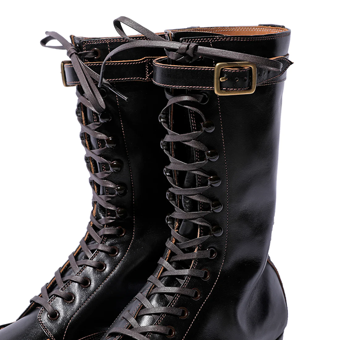 柔かく足馴染みの良い馬革なので、 10インチという丈のブーツと思えない、柔らかな履き心地で履いていただけます。染料で染めた後に顔料で仕上げているため、自然な出方の茶芯など、風合い豊かな経年変化が楽しめます。