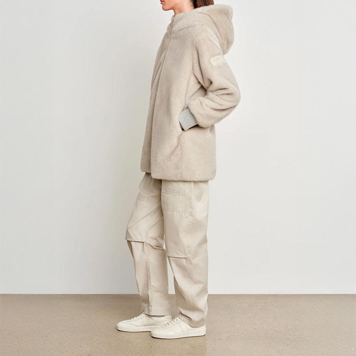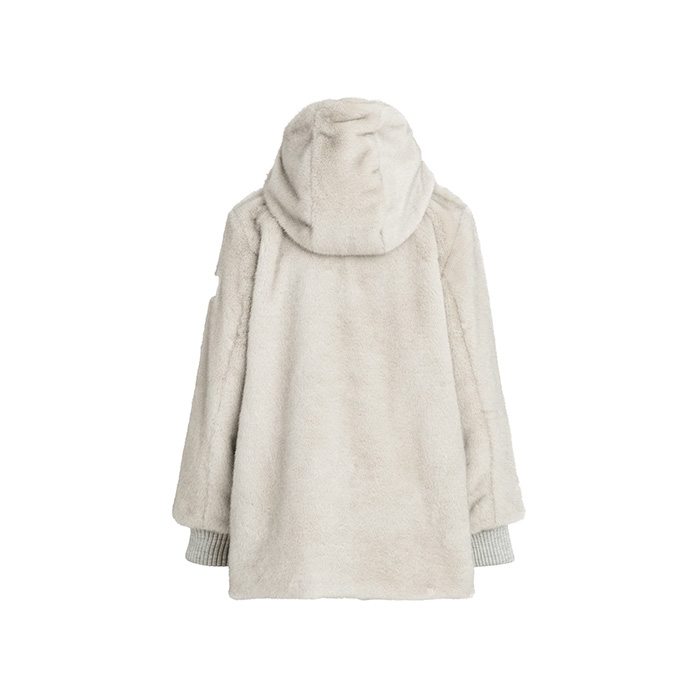 ラまるでリアルファーのような風合いが魅力のシンプルなフェイクファーフーディー。