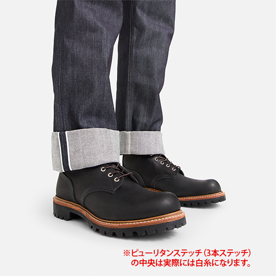 街中で履くには明らかにオーバースペックなロガーブーツですが、今回のロガーブーツは1961年に初めてビブラム社のソールを搭載した#899という8インチ丈のラウンドトゥブーツを元にロガーを現代風にリファインし、街中でも履きやすくコーディネートもしやすくデザインされた一足です。