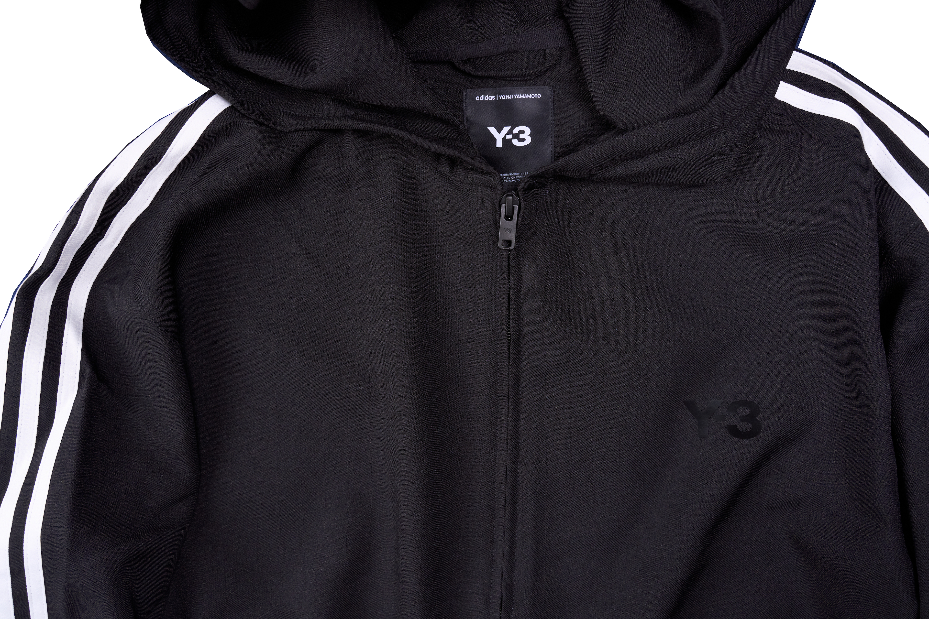 クラシックなストリートウェアのスタイルをベースに、意外性のあるディテールによって昇華させた「Y-3 HOODED TRACK TOP 3-STRIPES」。