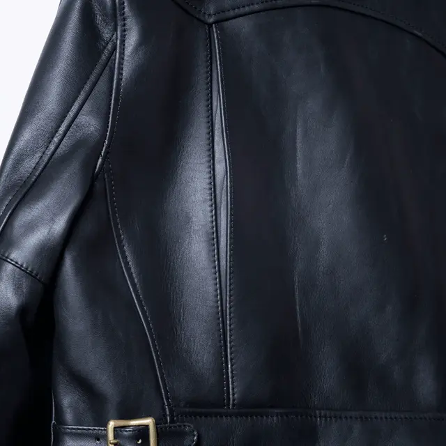 サドル芯となっている墨黒ホースを使用しており、革が剥げてもオイルを入れたり、焼けることで色が変化していくので、エイジングが楽しめる一着に仕上がった。