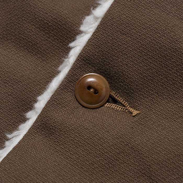 当時のランチコートの多くはアクリルのライニングを採用しているが、本製品は100%ウールを使用し、重厚感に加えて防寒性も申し分ない。
