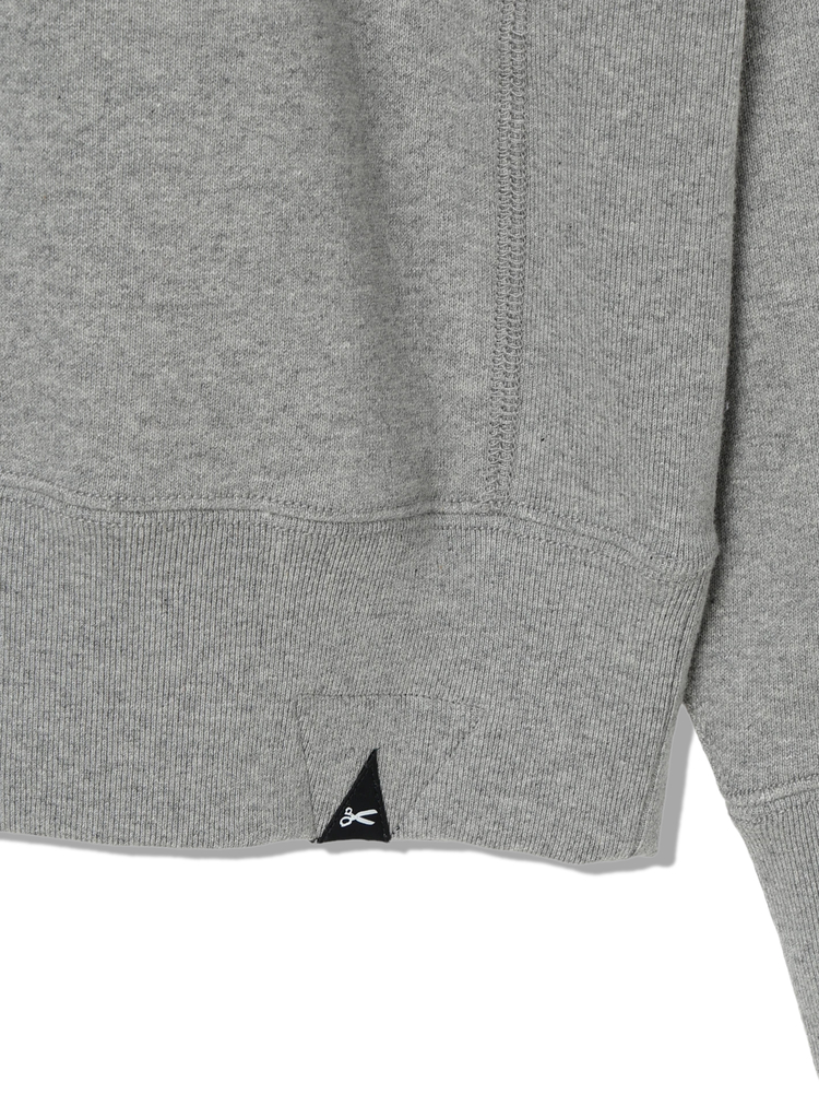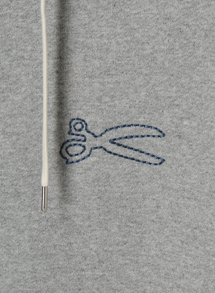 胸元のチェーンステッチで描かれたシザーズマークがアクセントになるフーディー。