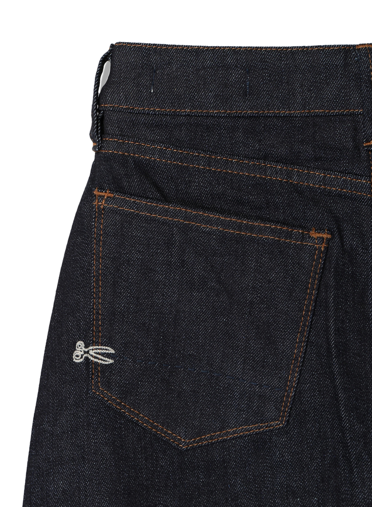 コインポケットとバックポケットにはハサミモチーフの刺しゅう入り。