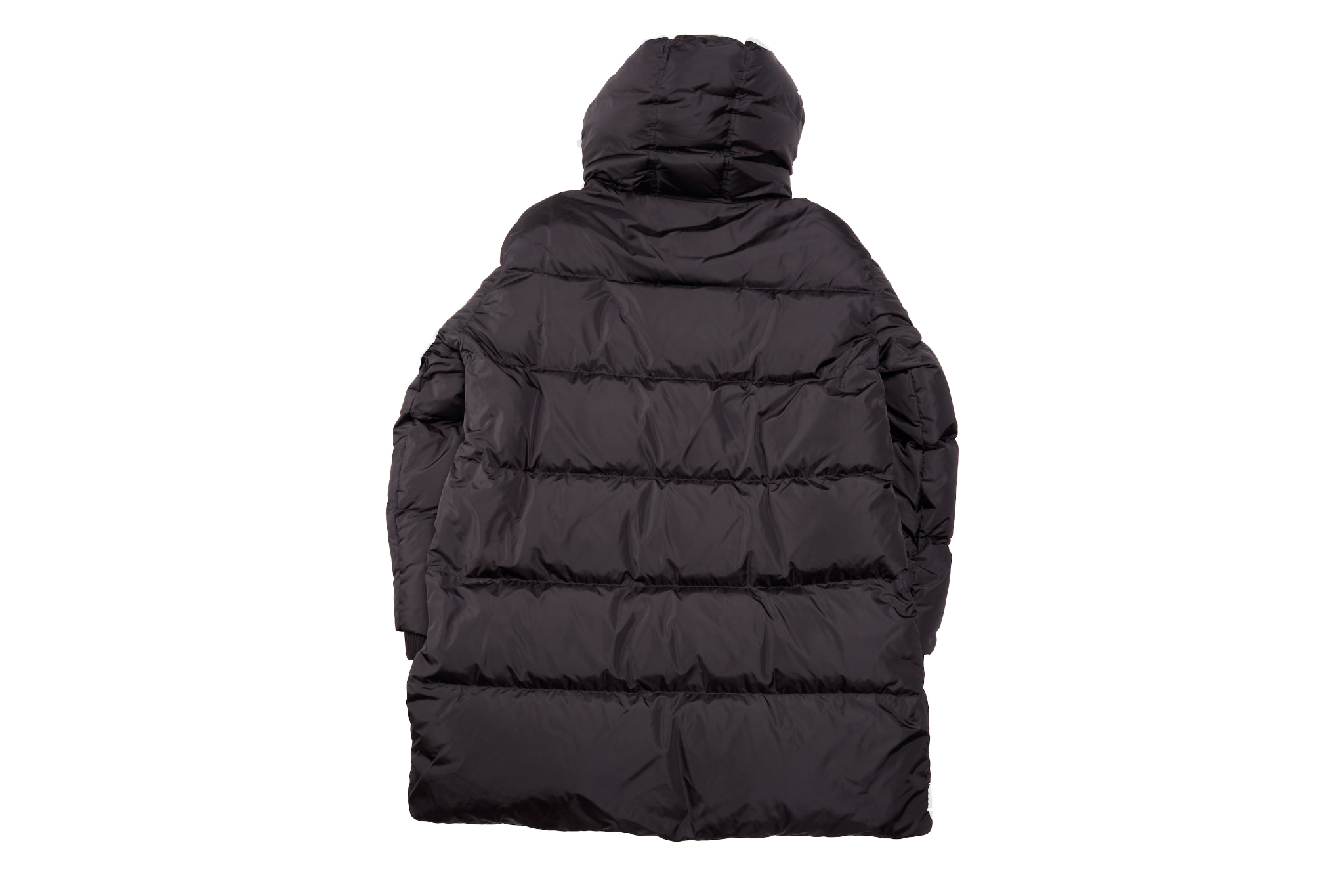 光沢感のあるシャイニーナイロンを使用したダウンコート。