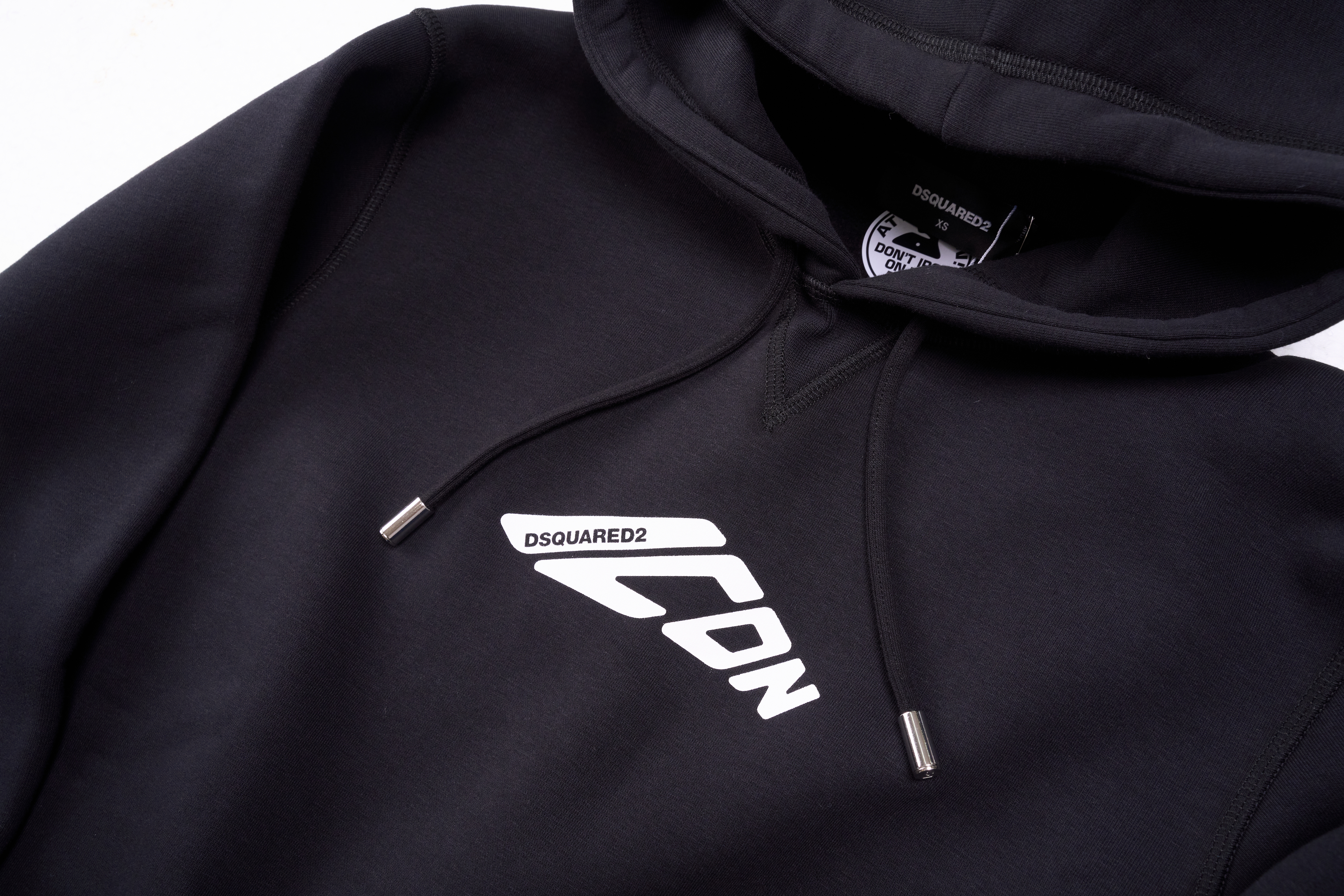 胸元の丸い"Dsquared2 ICON"ロゴが、アイコニックな魅力をアピールするデザイン。