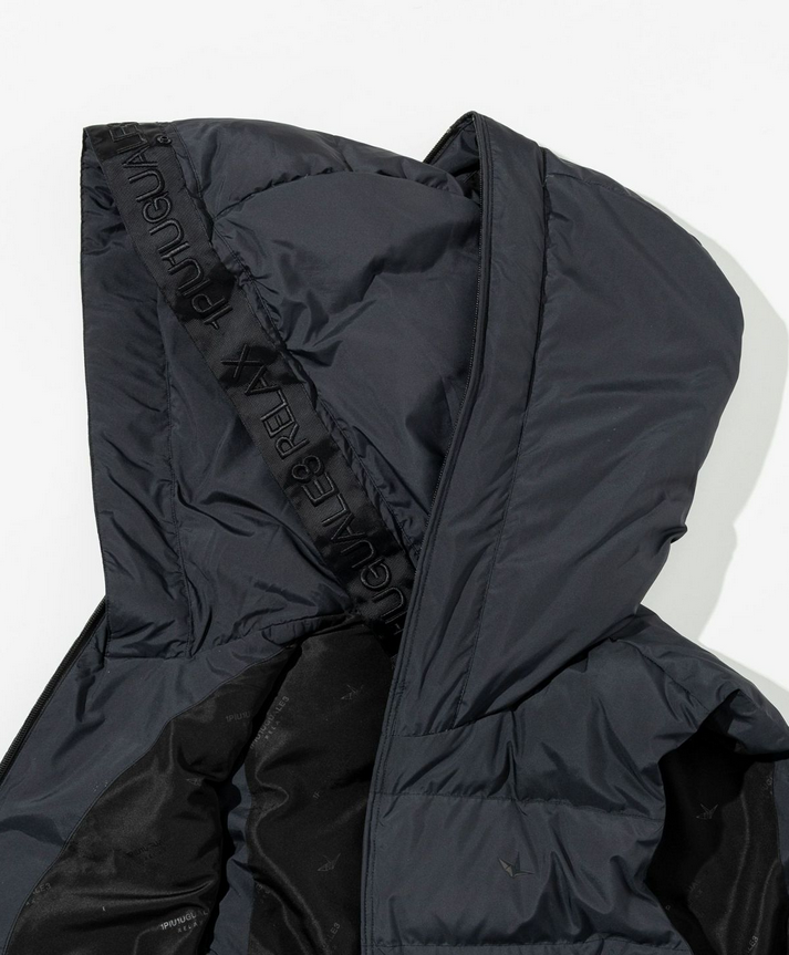 外側のボリュームが輪郭を引き立て、内側のフードが首元に心地よいフィット感を演出。