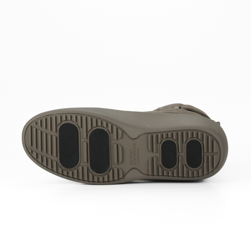 靴底に氷上で優れた防滑性を発揮するガラス繊維配合ラバーを搭載したミニマルなブーツタイプ。