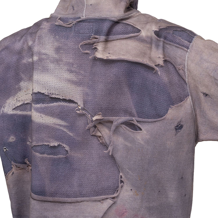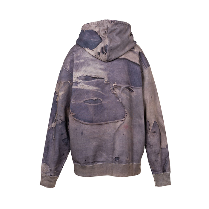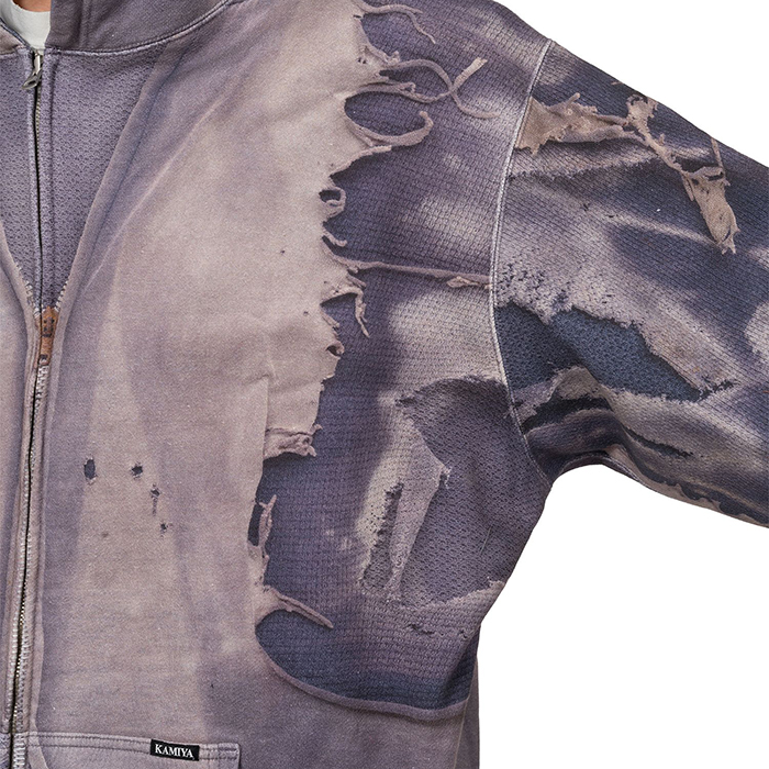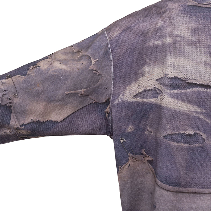 ※全体に施された穴あきやダメージ、汚し加工は、製品の特性としてデザインに取り入れられたものです。風合いとしてお楽しみください。