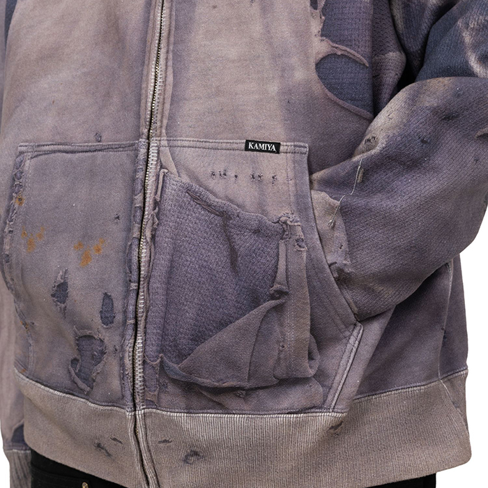 ヴィンテージのボロZIPフーディを超高解像度でスキャンし転写したデザイン。