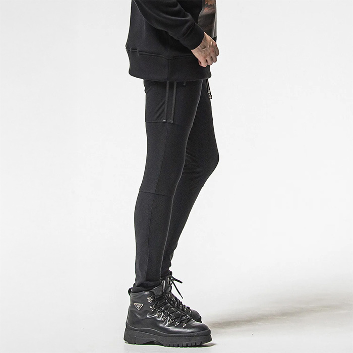 スウェット、ジャージ素材を合わせたハイブリットなパンツです。