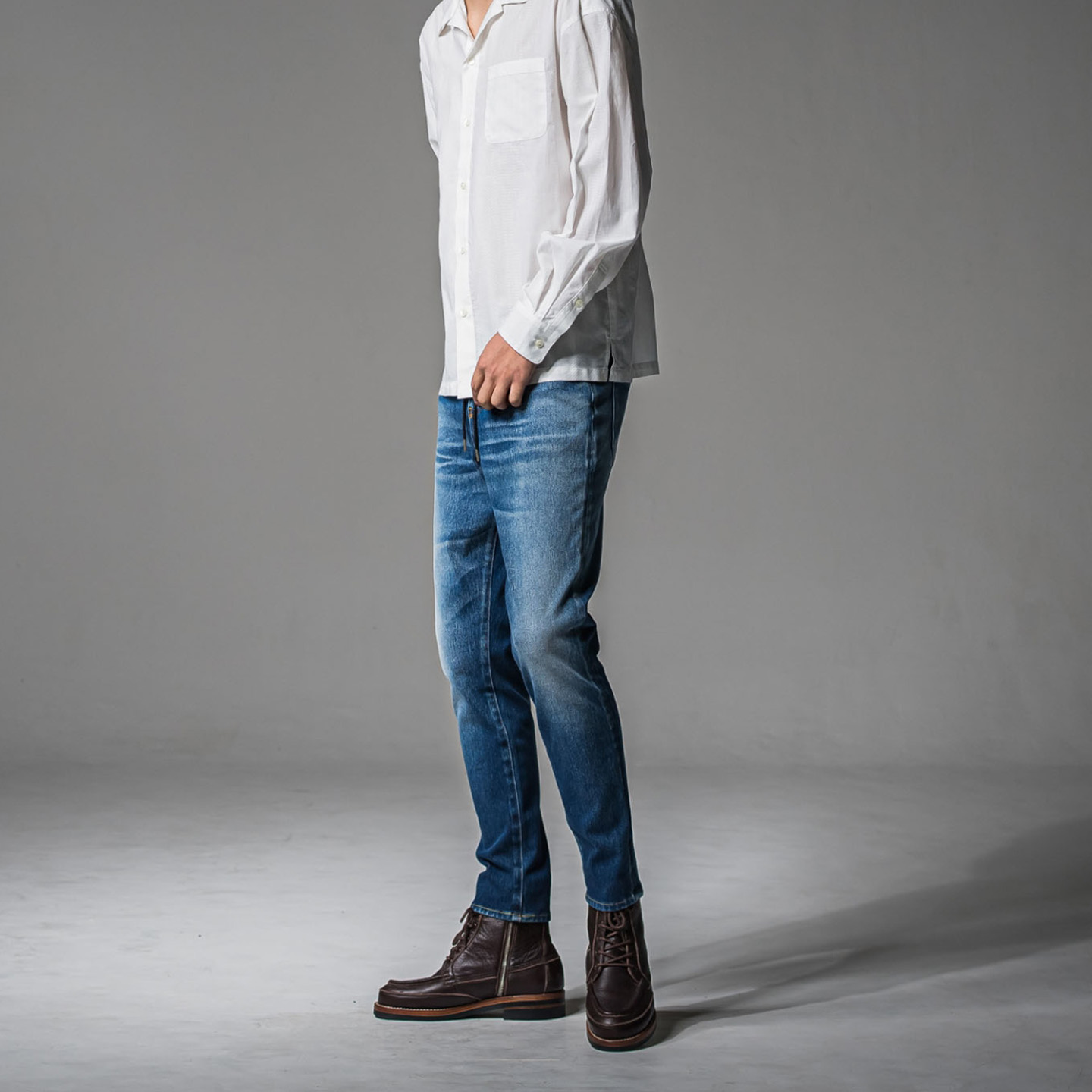 定番ジャージーンズ腿周りがやや緩めの、テーパードシルエットMICK