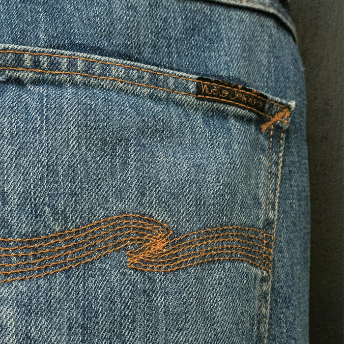 シルエットはレギュラーフィットのストレートレッグで、Nudie Jeans の定番 Gritty Jackson。