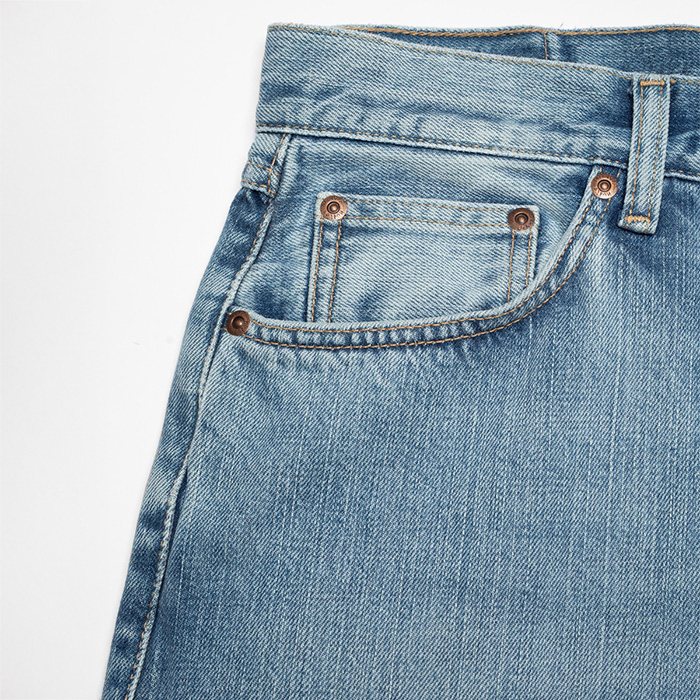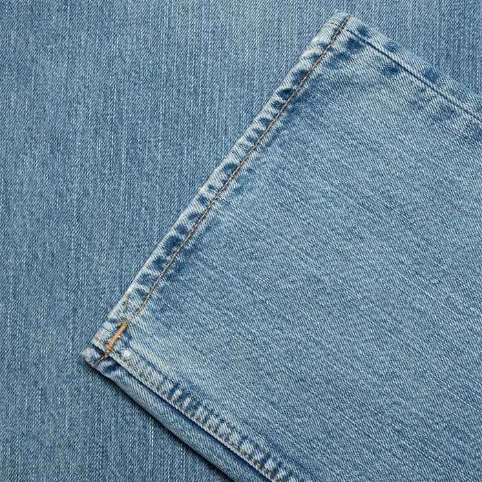 丁寧に仕上げられたウォッシュは、このデニム本来の質感を最大限に引き立て、陰影の深みを際立たせるとともに、ハイライト部分には明るさと縦落ちの美しい表情をプラス。