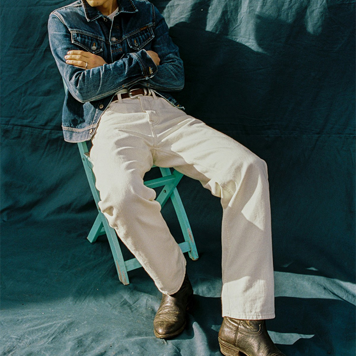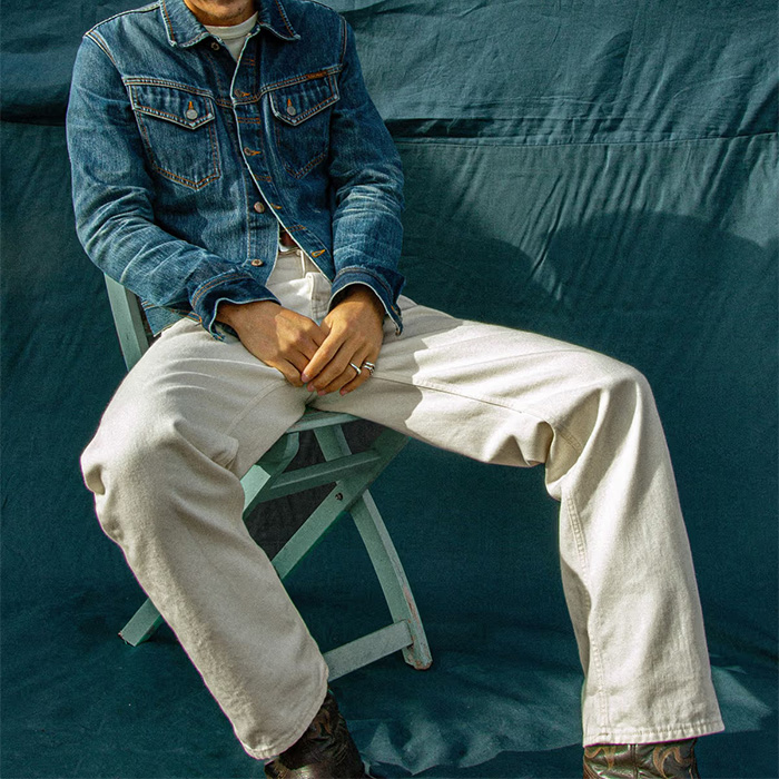 見た目はほとんど白に近いのに、アイボリーセルビッチには驚くほど豊かな表情とデニムらしさが宿っています。