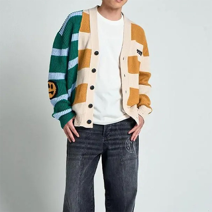 ウールニットパッチワークカーディガン