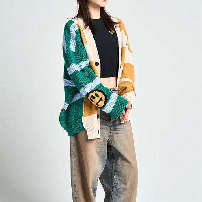 ブランドアイコンであるスマイルモチーフをはじめ、鮮やかな色使いや個性的なプリント、立体的な刺繍など、