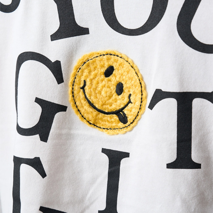 ハンドメイドのスマイルとクロスのニットワッペンがポイント