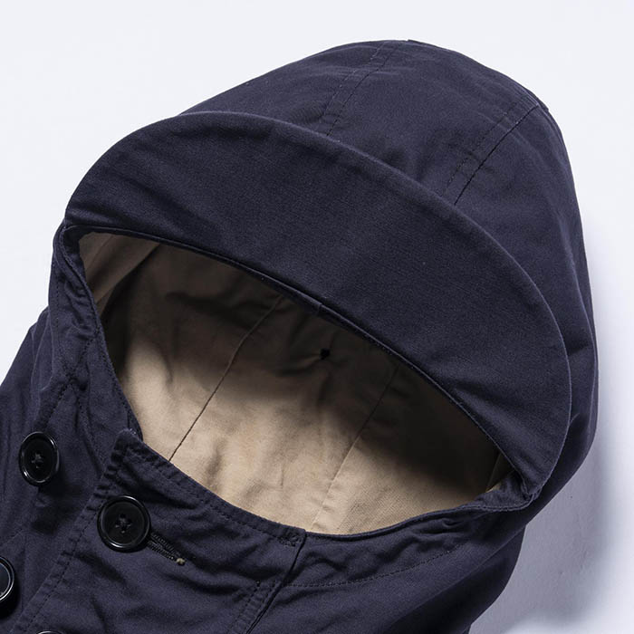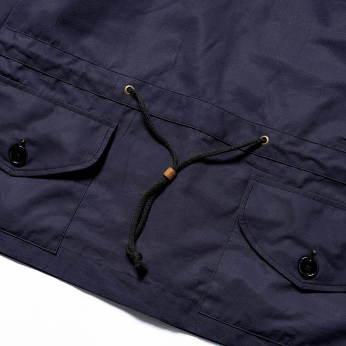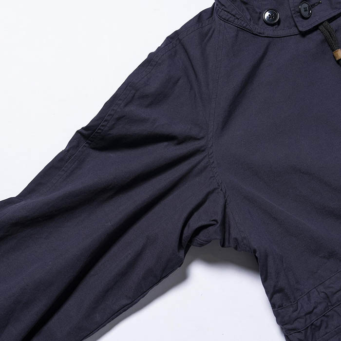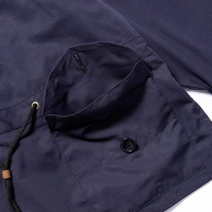 デザインから紐解くと、1950年代初頭に同海軍で支給されたファウルウェザー・スモックをよりシンプルに発展させたものであることがわかる。