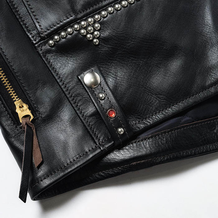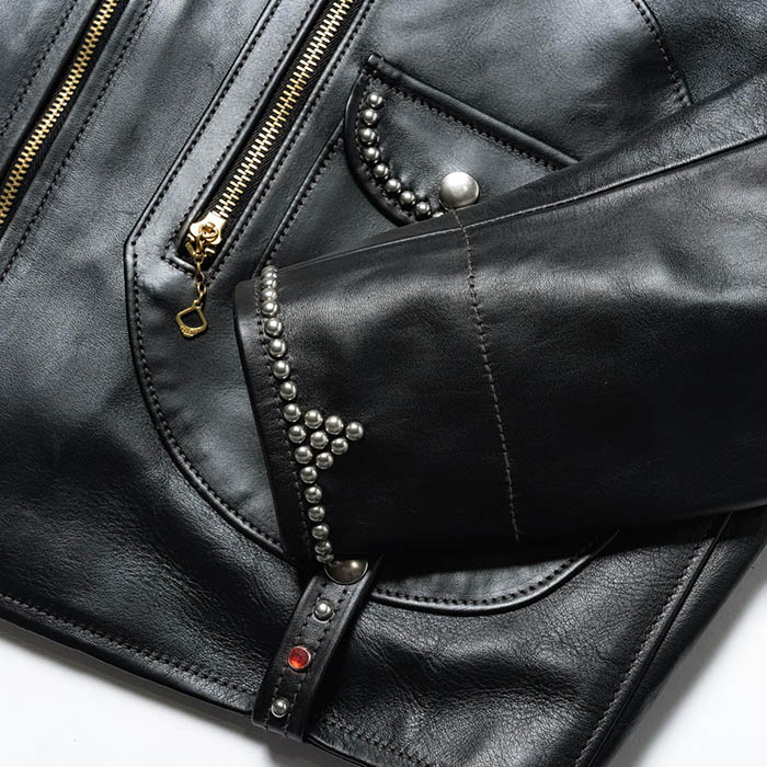 ジュエルにはリフレクターとしての役割が謳われ、機能性という奥行きを得たカスタムはレザージャケットにも施されていくのである。