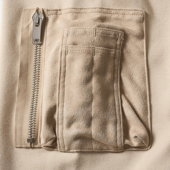 ユーティリティポケットを、きめ細やかで滑らかなタッチと高級感のある光沢を兼ね揃えたスウェード素材に切り替えることで、ラグジュアリーな雰囲気を演出。本体との異素材によるコントラストがアクセントとなっている。