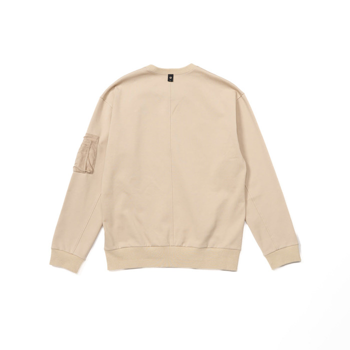シンプルな前Vスウェットにユーティリティポケットを搭載し、ミリタリーアレンジを加えたスウェットシャツ。