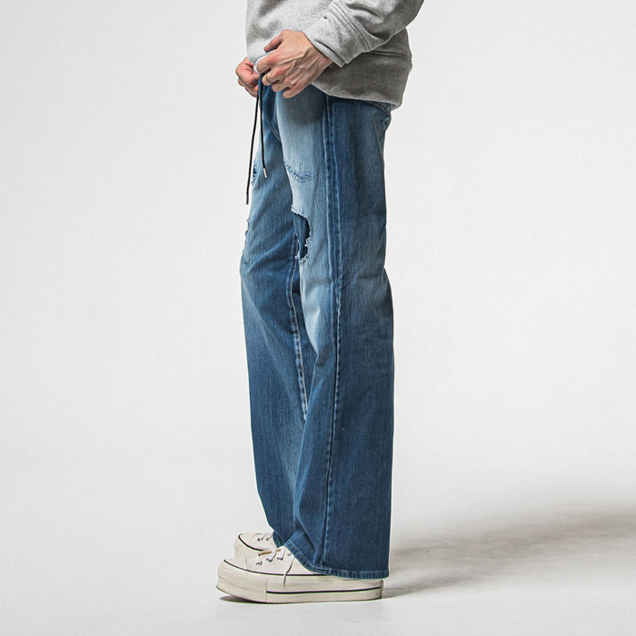 ・デニムは色落ちや歪み、擦れが生じる特性がございます。あらかじめご了承ください。