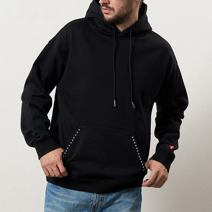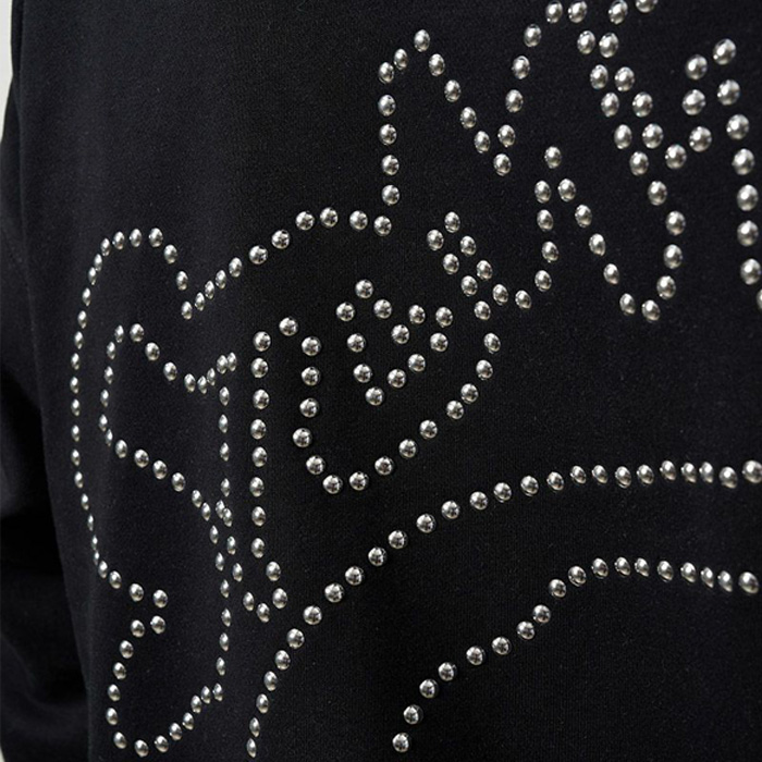 STUD MUFFIN(スタッドマフィン) 614-02858 ヘビーウエイト裏毛パイル メタルスタッズウェービーロゴプルパーカー BK