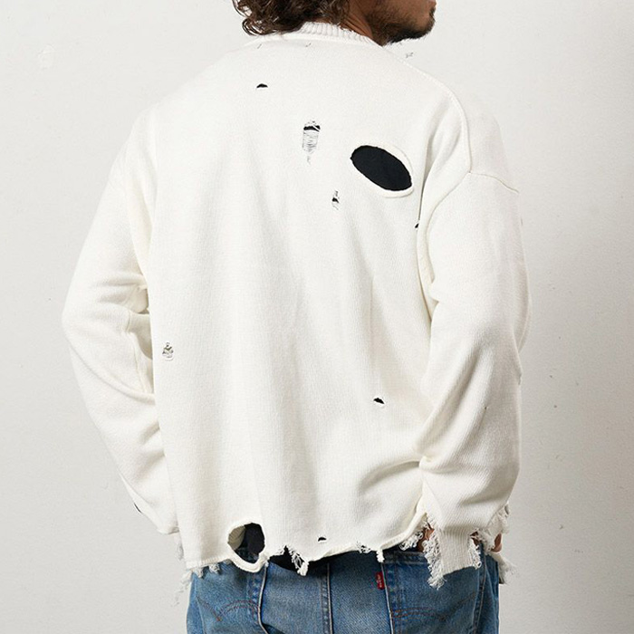 手作業で入れたハードダメージなワイドシルエットカーディガン
