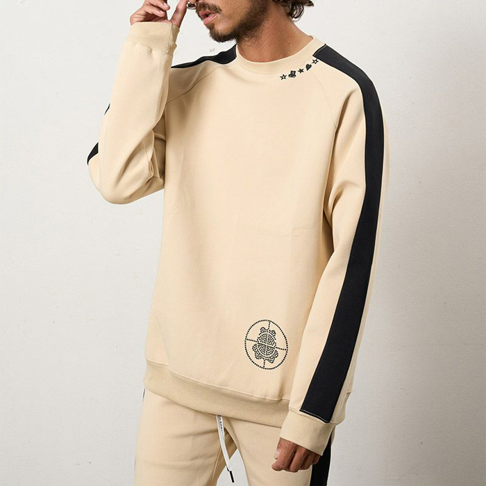 STUD MUFFIN(スタッドマフィン) 614-02862 TRストレッチポンチ ラインストーン ターゲットベアラインスエットシャツ オフホワイト