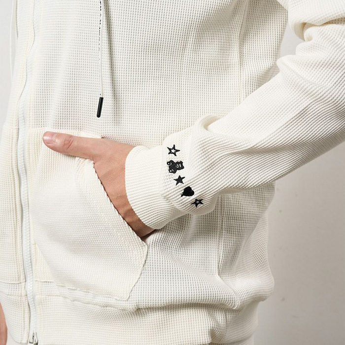 STUD MUFFIN(スタッドマフィン) 614-02863 ヘビーウエイトコットンワッフル ペイズリーサガラジップパーカー ホワイト