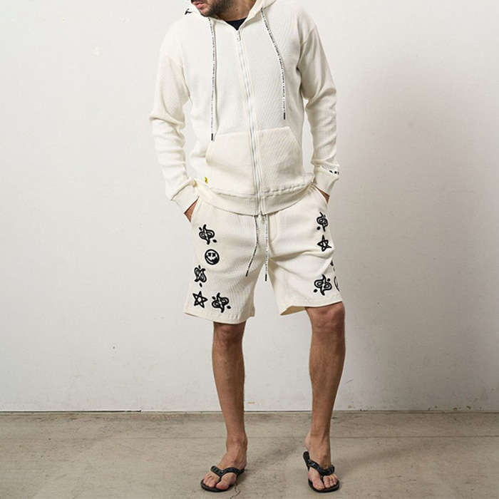 - STUD MUFFIN(スタッドマフィン) 614-02863 ヘビーウエイトコットンワッフル ペイズリーサガラジップパーカー ホワイト