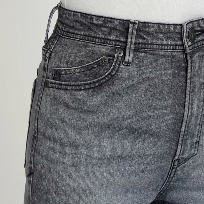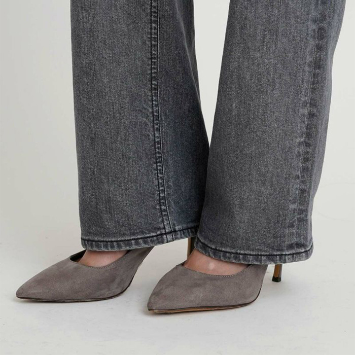 ゆとりのあるストレートはどうしても野暮ったくなりがちですが、LEAはパターンにこだわることで美脚に、