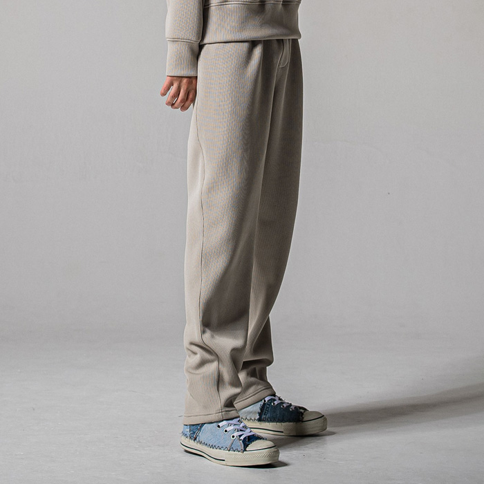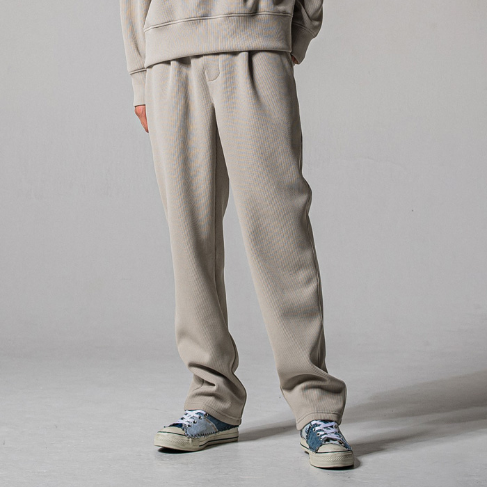 高機能畔編みニットセミワイドシルエットのワンタックイージーパンツ