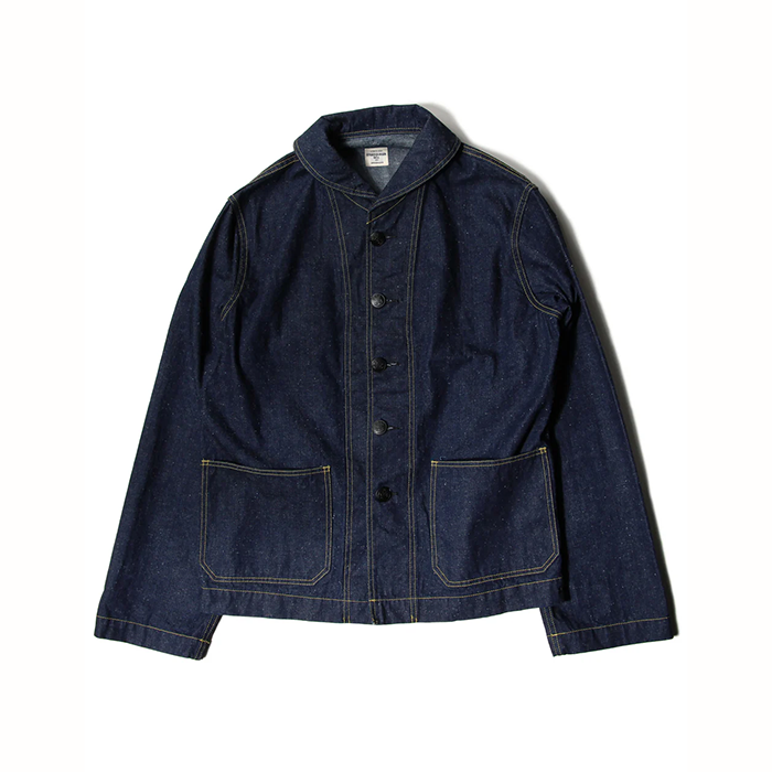 1940年代に米海軍で採用されていたショールカラーデニムカバーオールを忠実に再現したモデル。無骨なデニム地に特徴的なショールカラーを備え、ワークとミリタリーの両面を感じさせる存在感ある一着です。