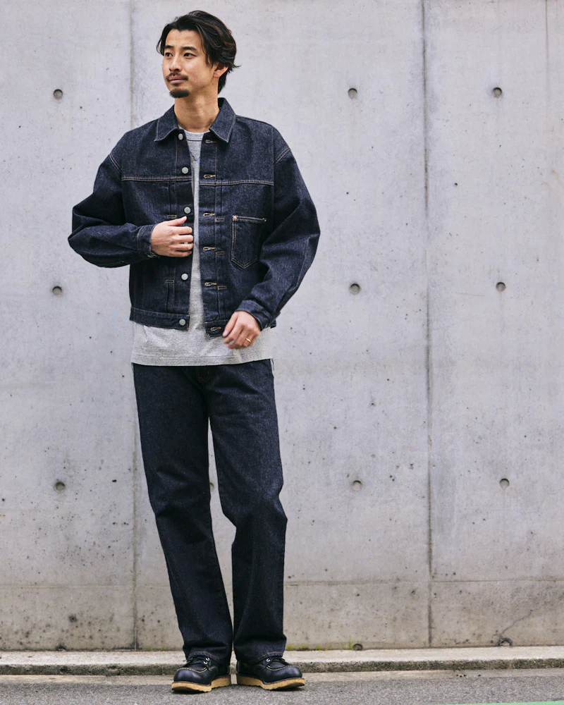 長く愛用したいベーシックなストレートシルエットだから、色落ちしたときに格別な表情を見せる『JUMBO DENIM』はおすすめのデニム生地です。