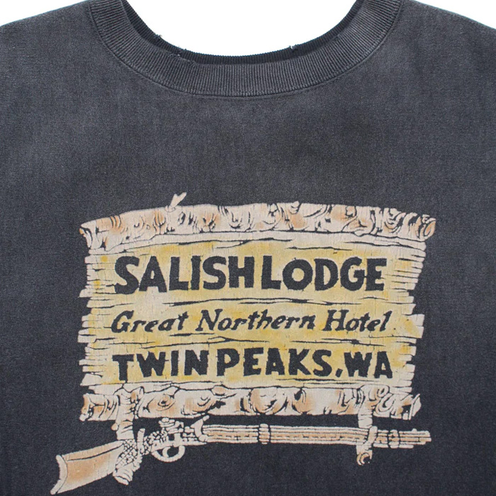 デヴィッド・リンチ監督「TWIN PEAKS」に登場するホテルを、ロケ地として使われたSALISH LODGEの土産物Tシャツという設定でイメージして製作。