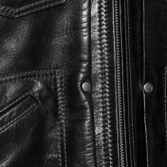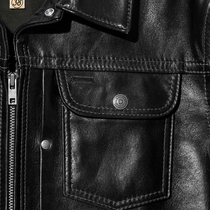タック部分の特徴的な丸カンはカシメで表現するなど、オリジナルに忠実にレザージャケットに落とし込んだ、春夏限定のスペシャルな1着が完成した。