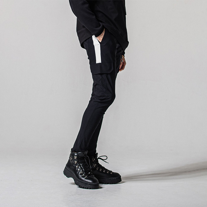 マチのないすっきりとしたカーゴポケットは、立体感とスマートさを考慮してデザインされており、邪魔にならないスタイリッシュな印象を与えます。