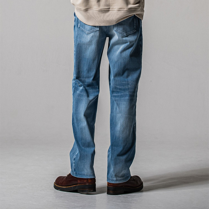 これまでの12オンスジャージーンズは、体感で14オンスほどのヘビーな印象がありましたが、今回はやや薄手の10オンスを採用。穿きやすさと軽快さを重視しました。
