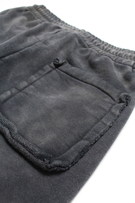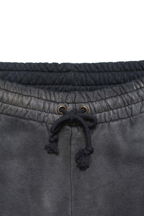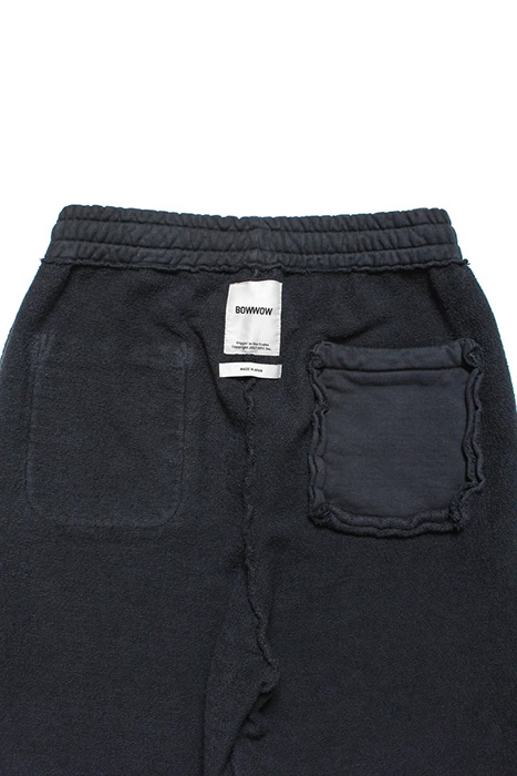 起毛無しの厚地裏毛を使用したスウェットパンツに、BOW WOWが得意とするリアルなヴィンテージ加工を重ね、長年穿き込まれてきたような表情に仕上げている。