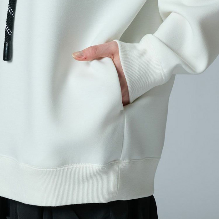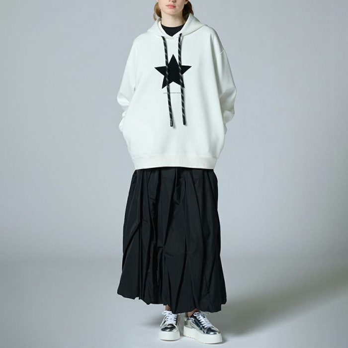 カラー展開はオフホワイトとブラックの2色で、パンツやスカートなどボトムスを選ばず使いまわせるアイテムです。