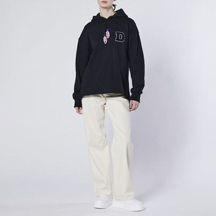 胸元に配したDロゴがデザインのアクセントになったフーディー。