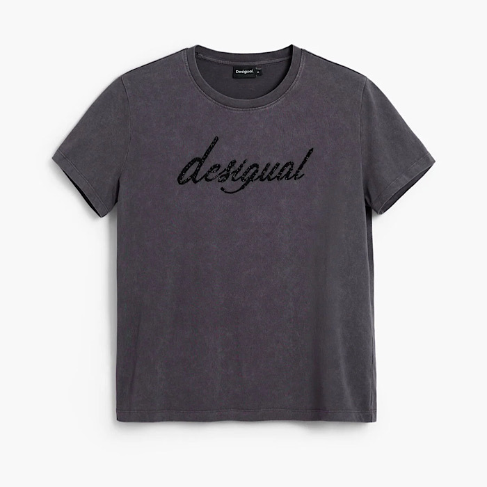 デシグアル 26SWTK082058 Deshigual / 刺繍ロゴ入りTシャツ グレー レディース カットソー