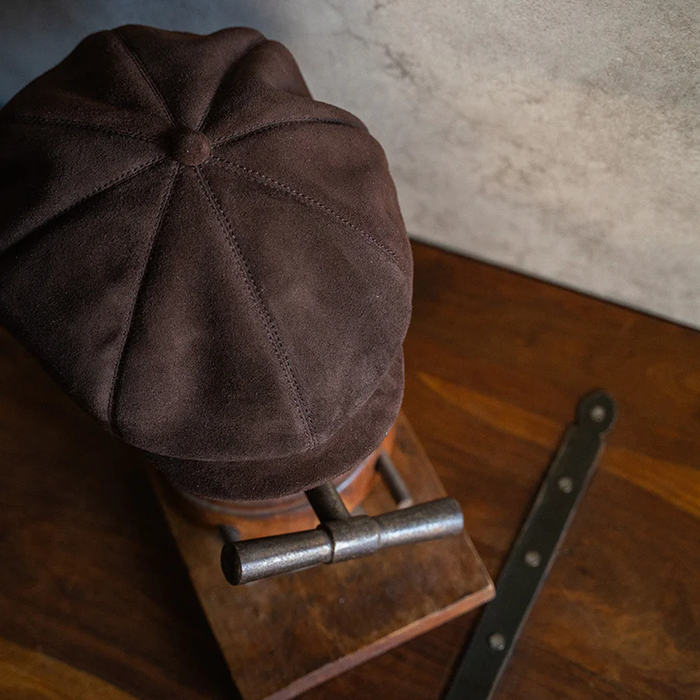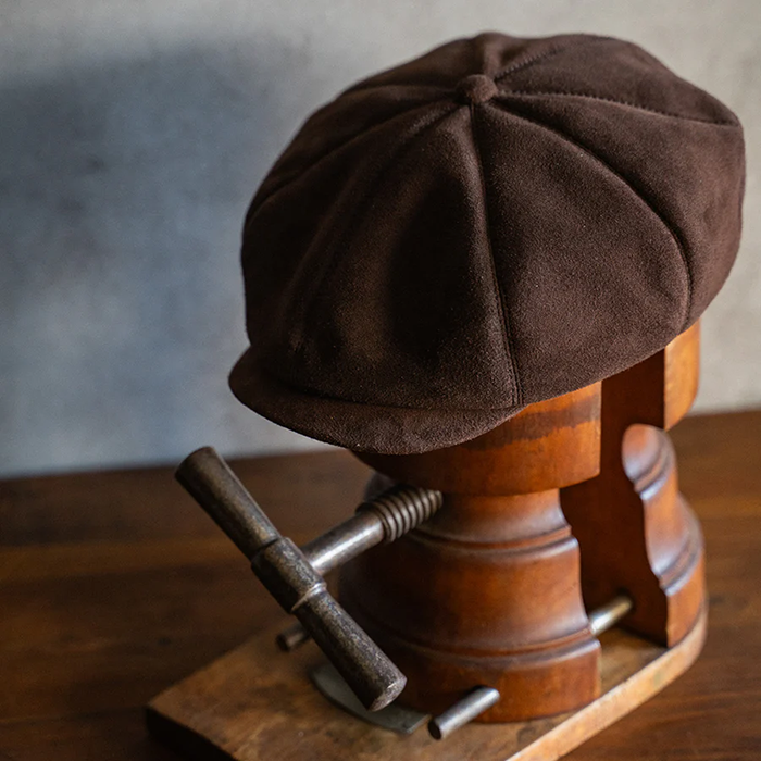 BRUNELでは定番となった8 PANEL CASQUETTEを、ブラウンのディアスエードで製作。