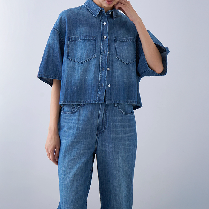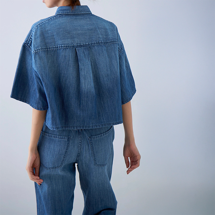 吸湿性・通気性にも優れており、夏でも涼しく快適にご着用いただけます。ショート丈なので、どんなボトムスと合わせても軽やかで旬なスタイリングに。